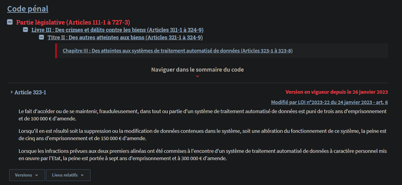 In France, unlawfully getting access inside an online system can be punished, with jail time up to 5 years and a 100 000 euros fine.